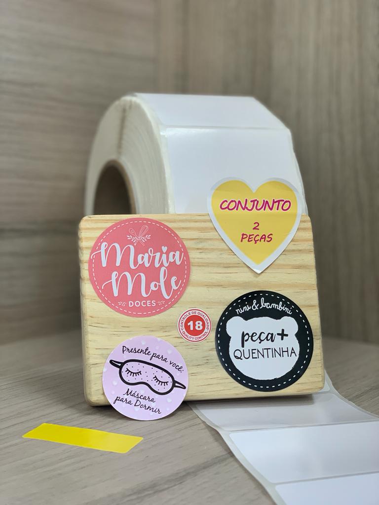 Etiquetas adesivas com impressão em até 4 cores. Disponibilidades de etiquetas em flexografia. Fazemos com recorte especial ou recorte reto.